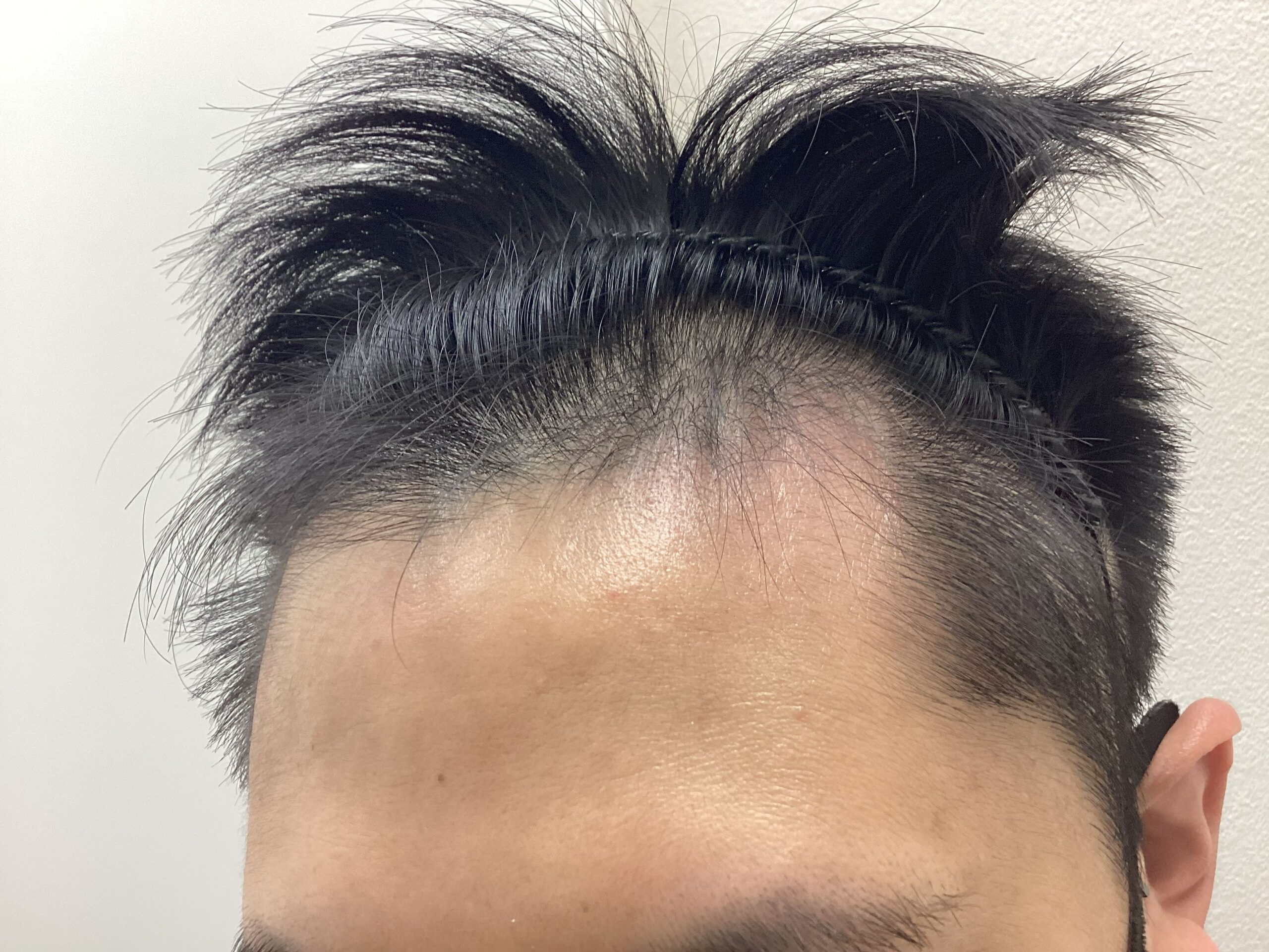 生え際の後退がありM字の深さが目立っており、髪の毛の軟毛化が見られました。