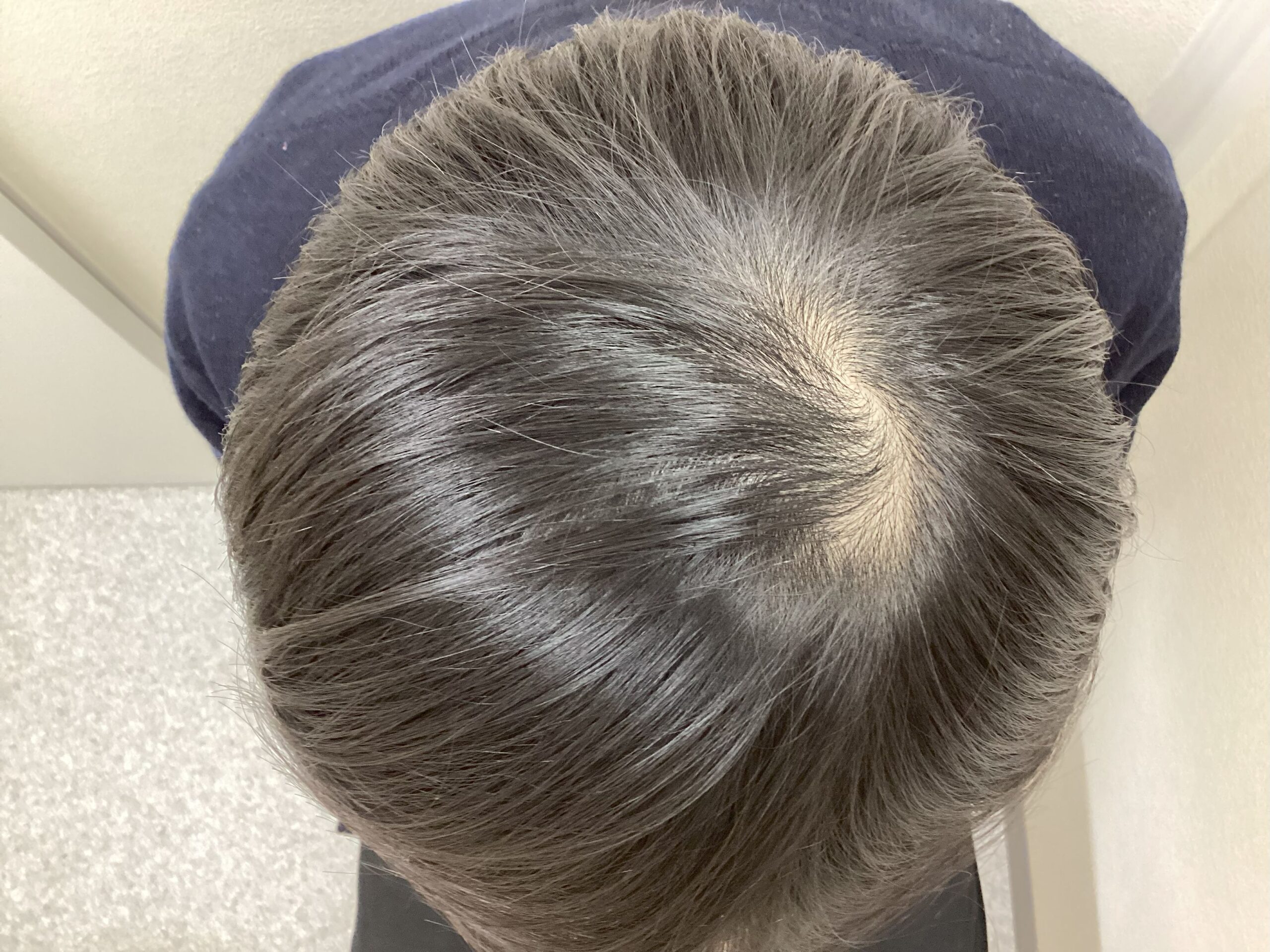 頭頂部は軟毛化していた髪質も太さがありコシのある髪の毛が増え地肌の透け感が改善されボリューム感が増しております。